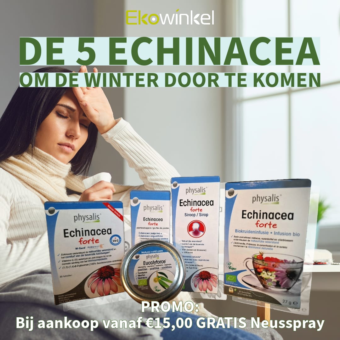 Promo: Van 15/10 tot 12/11/23 Gratis Physalis Neusspray bij aankoop vanaf €15,00 van de 5 Echinacea.